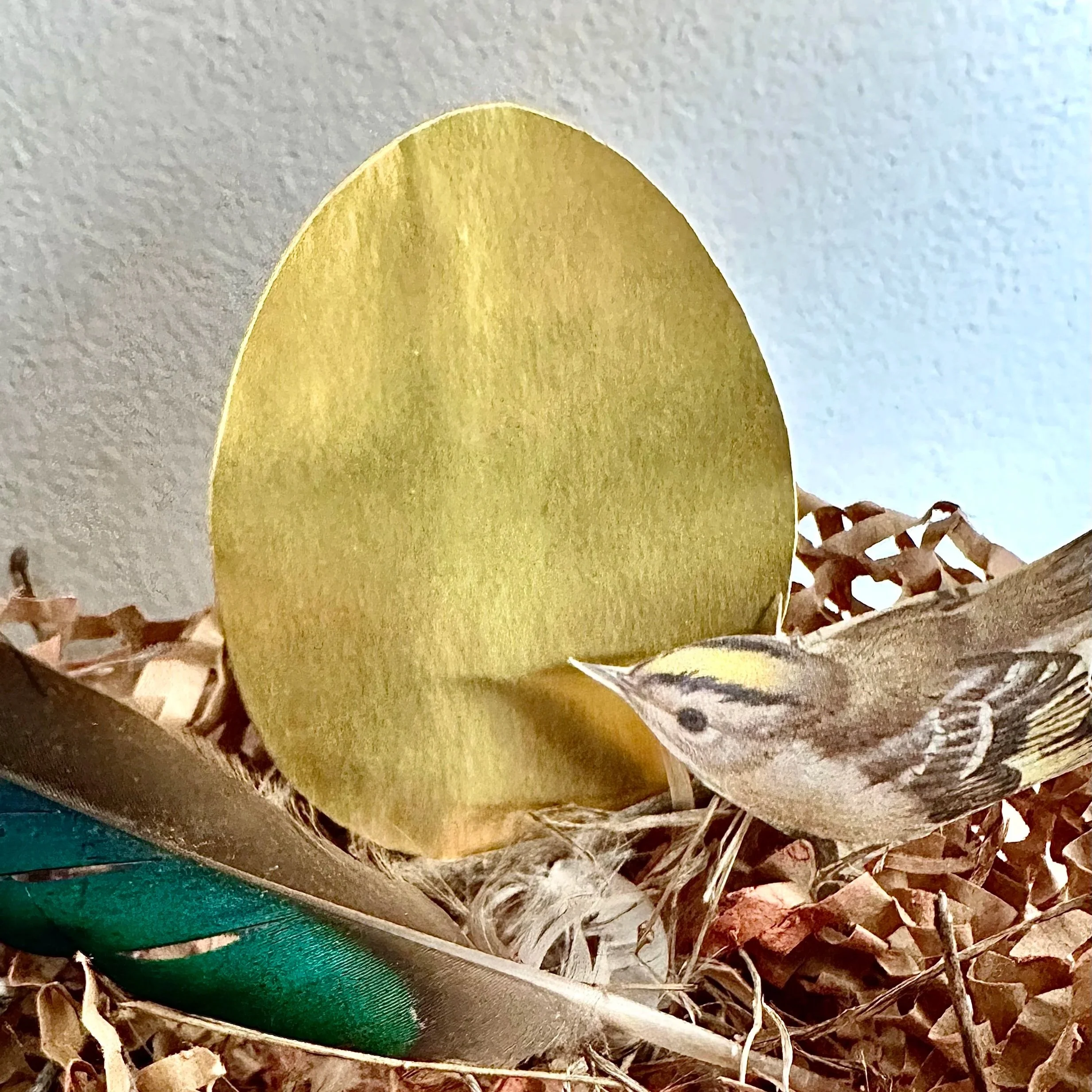 Beginning with a golden egg, you'll be guided in using a variety of materials to make a nest, adorned with natural and found materials. Does your egg need to incubate for a while, or is it ready to crack open? You decide - it's your creation! You might like to choose a bird guardian to watch over your piece.